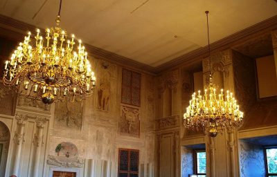 Václav Eusebius redesigned the Palace in the Italian manner. His design influence can be seen today in the Imperial Hall, whose walls are painted in fresco with trompe l’oeil statues of emperors surrounded by geometric designs, floral and other decorative motifs. Additional examples of the Italianate style can be found in what are referred to as the Concert Hall and the Balcony Room, whose ceilings are adorned with elaborate painted stuccowork and sumptuous frescoes by F.V. Harovník.